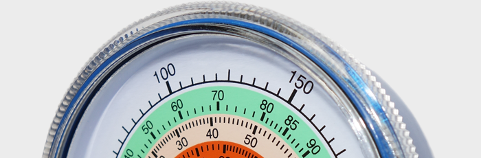 Blue color steel (FLs70D), or plastic (FLp70D) refrigeration gauge with TWIST-ON polycarbonate (PC) lens, BRASS internals, socket, and connector.